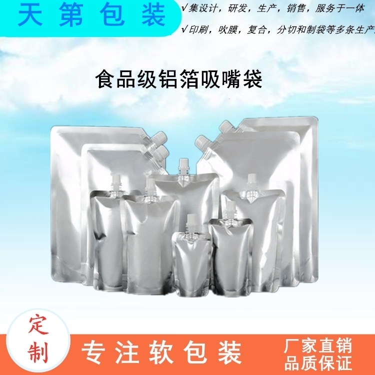 吸嘴袋的結構主要分為兩部分:吸嘴和自立袋。自立袋部分與普通四封邊自立袋在構造上是一致的但一般采用復合材料以符合不同食品包裝的要求。吸嘴部分可視為一般瓶口加裝吸管。兩部分緊密結合形成支持吸食的飲料包裝,而且由于是軟包裝,不存在吸食困難的情況,封口后內容物不易晃動,是一種非常理想的新式飲料包裝。